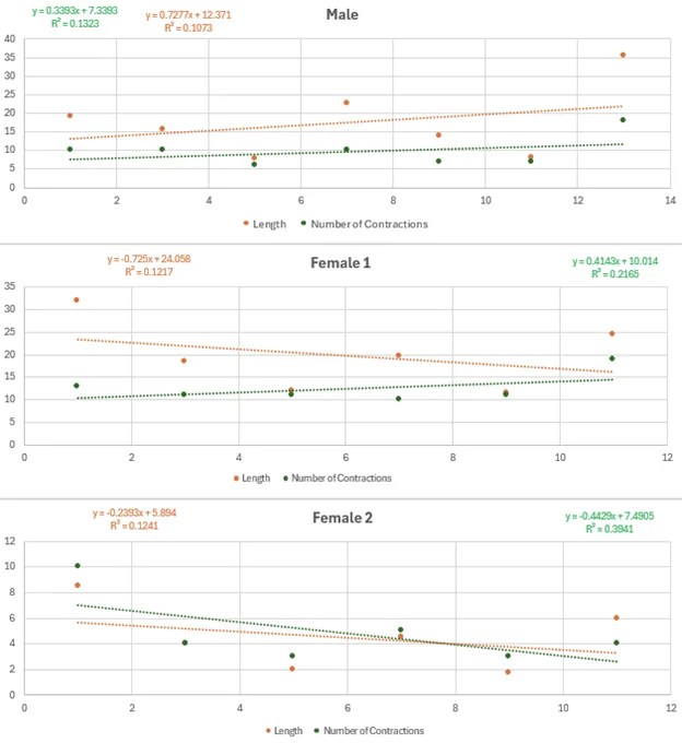 - Short or irregular contractions: The female participants’ contractions could have been too brief or inconsistent for clear analysis.