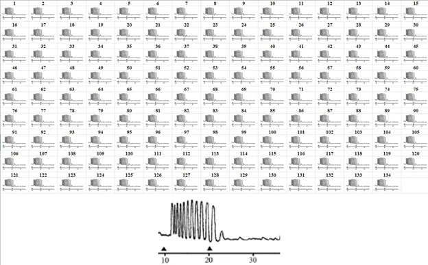 Gold standard evidence would involve 134 evocations of the urogenital reflex, which can be measured by an anal probe. In the figure below, I replicated a 10-second evocation of the urogenital reflex 134 times to equal 134 instances.