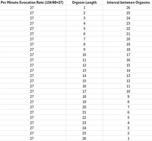 For reference, a binary contraction analysis with 134 would look like the following, assuming a 10-second orgasm: